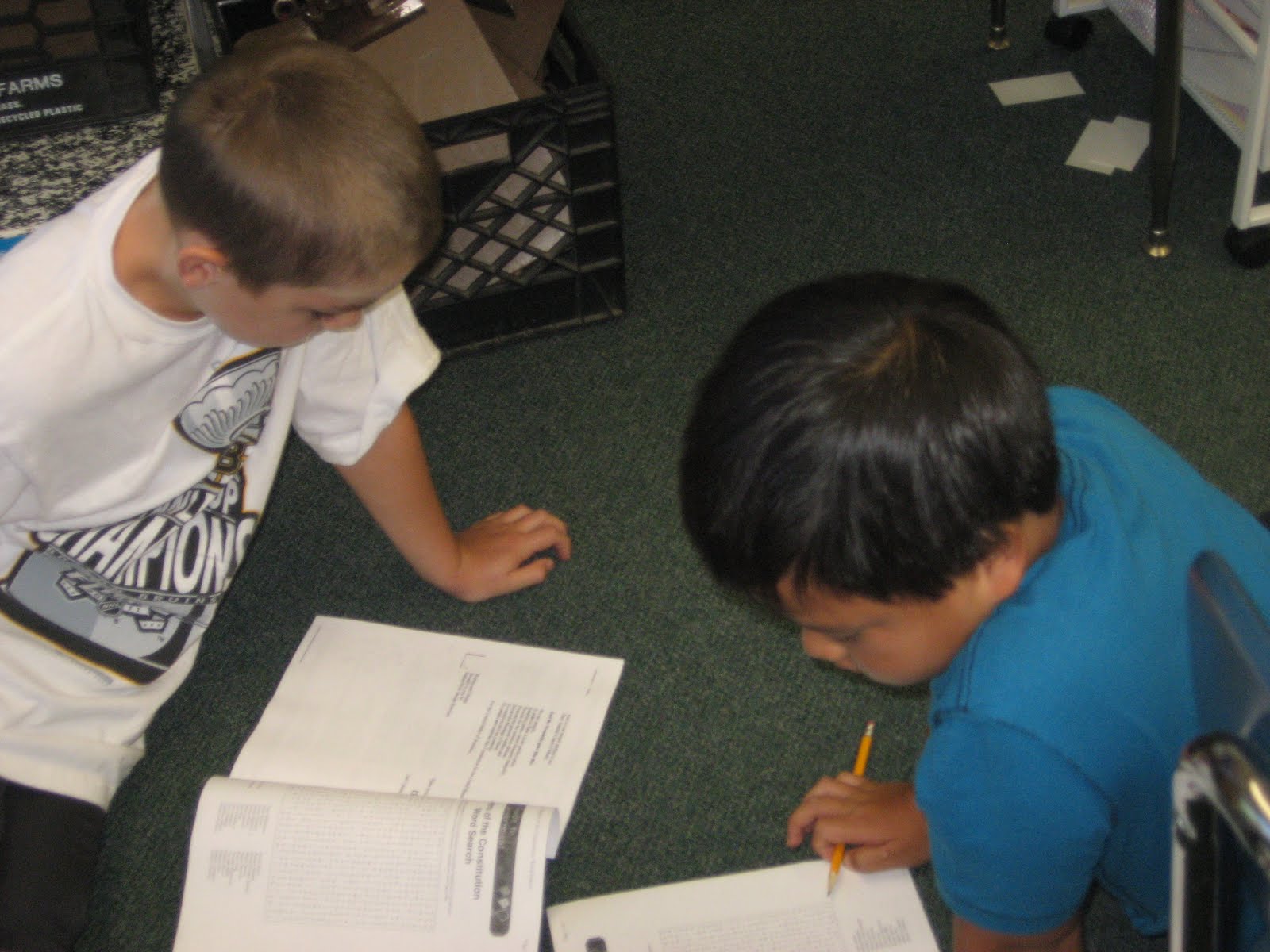 In Reading, we were fully able to follow the Reader's Workshop structure this week. The children are really becoming quite independent in following all of the steps. After the housekeeping portion of our Reading time, a student gives a "Book Talk" where he/she talks about a book that they LOVED and they suggest it to their classmates. Below is Charlotte giving a book talk on The Meanest Doll in the World. This is a very popular series of books.