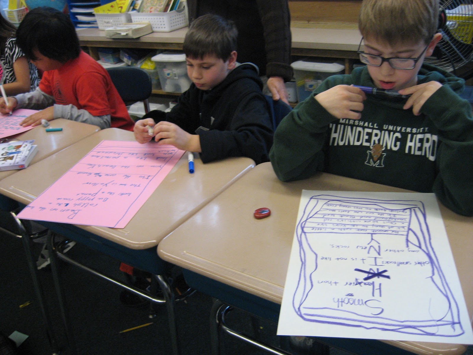 Here we are working on our first poems, thinking about our "stone" and using it for inspiration.