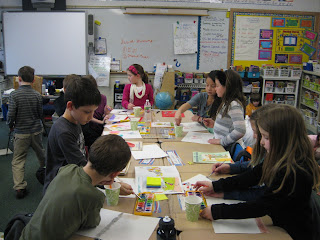 In math, we have continued to work on measurement, with the study of area and perimeter. We have really made the connection to the real world with this unit. Students this week have been working on creating a "home" for a Ladybug. Students were given room sizes and had to work in groups to create a design for a "Ladybug Garden". Below are some photos of the students working in their groups and then later sharing their ideas with someone outside of their design group. I've also included a few designs.
