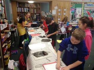 Mrs. Tracey helped us with ink and a brayer, and we created some Aztec sun prints! We learned about Mexican poet, Octavio Paz, and wrote some free verse poetry in his style.